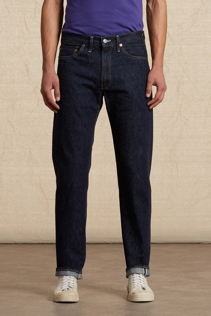 In 1954 Levis took their 501 jean to America's East Coast, this was new territory for the brand. They added a zip fly to maximize market appeal. The 'New Rinse' finish is based on a pair from Levi's archive, the denim is washed and hand finished so as to lightly broken in, with whiskered areas at the points where there is most wear.