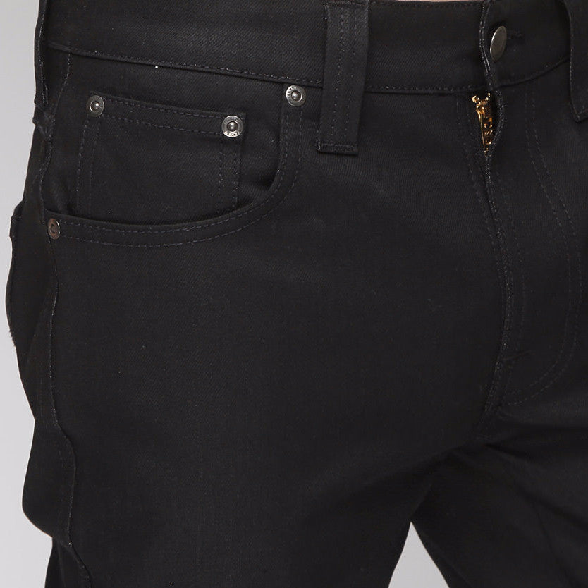 A dry, black, coated denim option. Your life gives denim its unique character formed by you into a second skin.