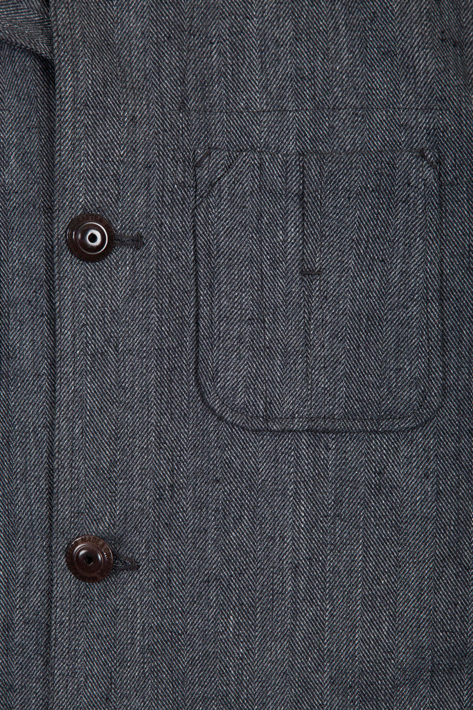 The Whistle Coat is crafted in cashmere soft, brushed cotton herringbone fabric. The style is inspired by a 1919 Levis sack coat and gets its name from the use of early 20th-century whistle buttons, a kind of button that has one hole at the top & two holes at the bottom for fastening it to the fabric, thus fully protecting & not exposing any thread.