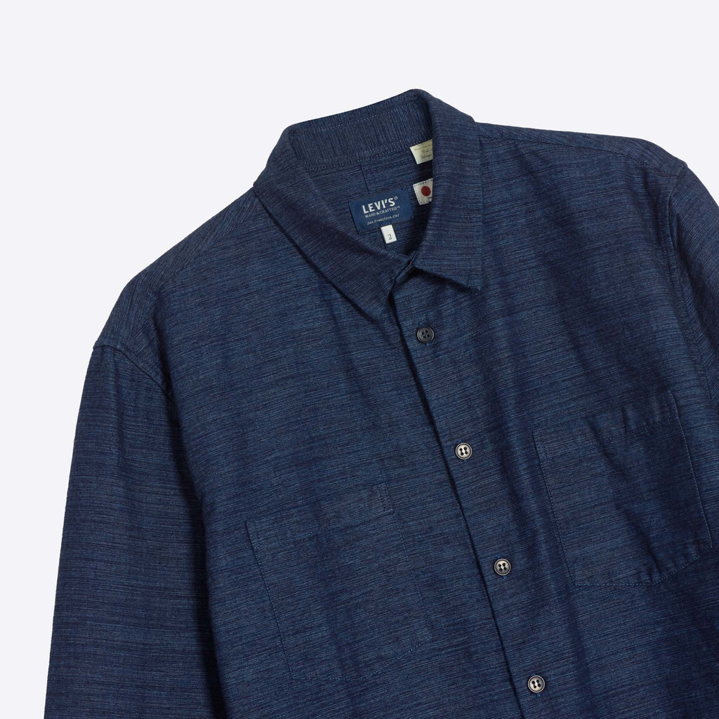 Levi's® Made & Crafted™ Overshirt is an essential part of Levi's® heritage and craftsmanship. It retains the straight shape and traditional details of a workwear overshirt, but is modernised with a tailored look and adjusted pocket size. This garment is crafted from Japanese chambray with a lightweight feel and the classic look of denim. The premium Kasari fabric features indigo-dipped threads compactly woven for a raw uneven texture and finely patterned aesthetic.