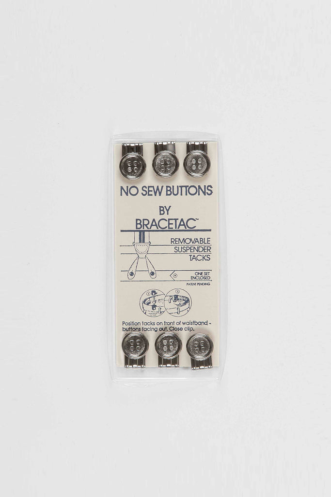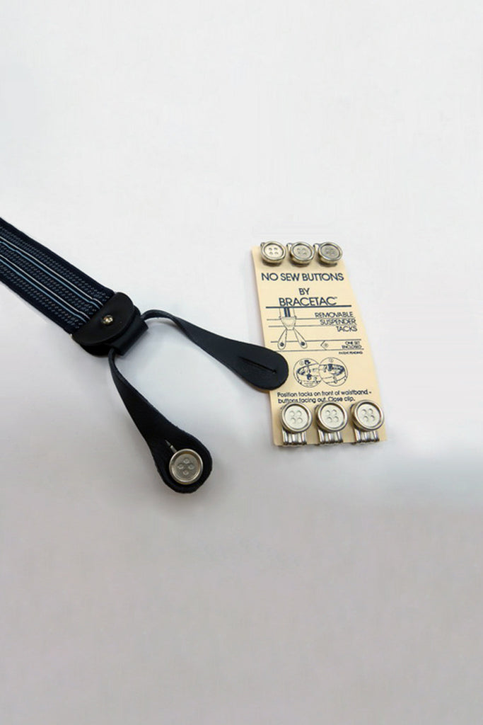 Years ago, before belts loops became a part of fashion in the 1930s, braces were the rule. Most men's trousers came complete with braces buttons prominently sewn on the outside of the waistband. Now with the removable braces buttons, it's possible again to put back to the outside of the trousers where they belong. No longer will the fine leather tabs of your braces be hidden behind the waistband.